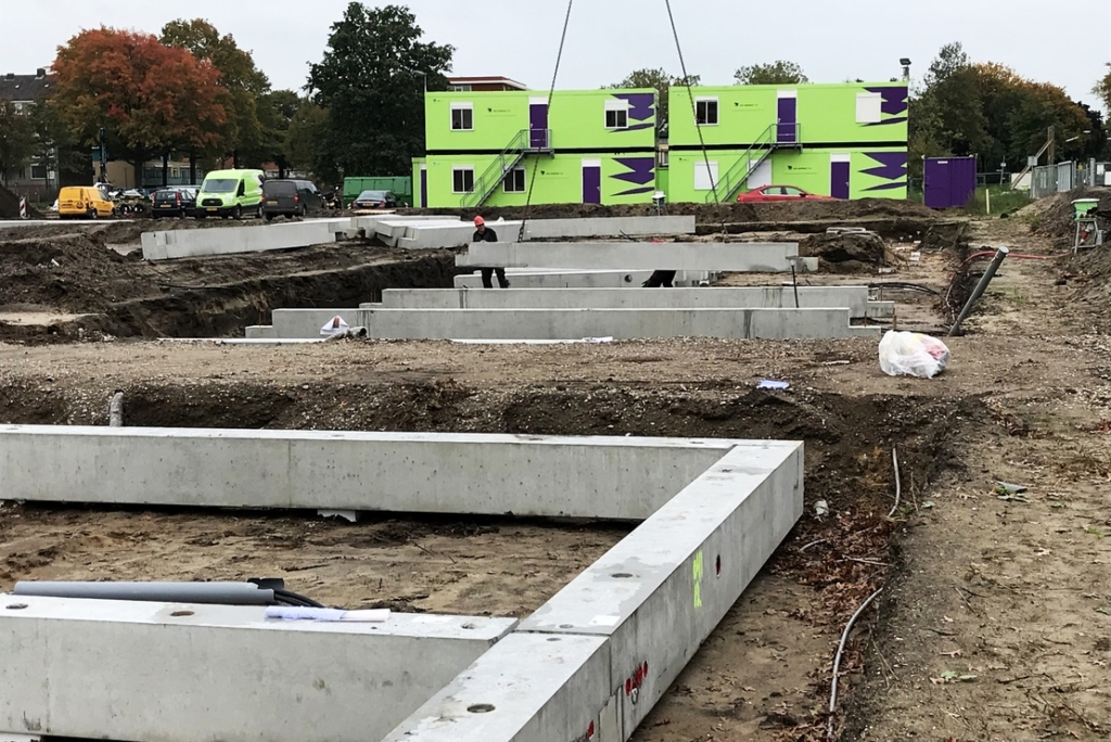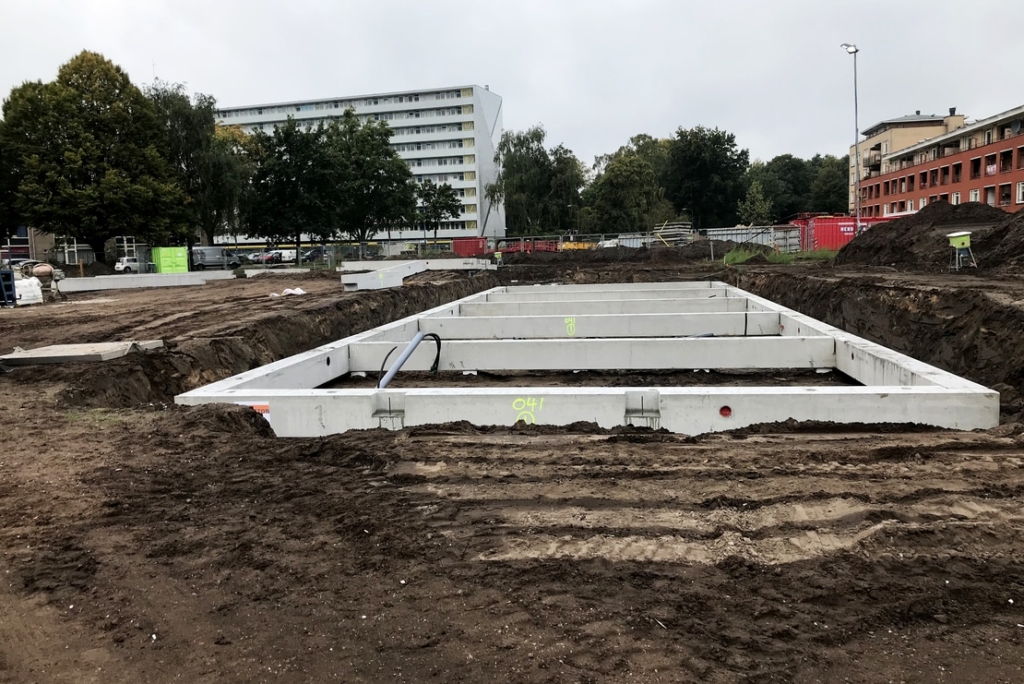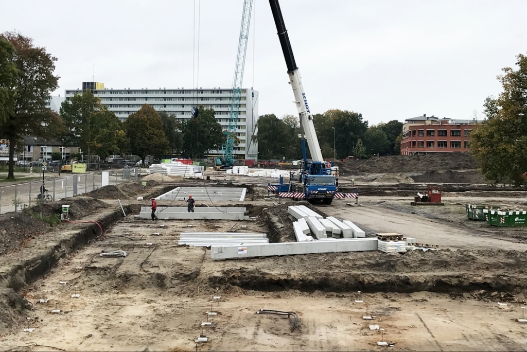 In Bilthoven haben wir unter der Leitung des zur TBI-Gruppe gehörenden Generalunternehmers ERA Contour mit den Grundierungsarbeiten für 72 Eigentumshäuser und 33 Sozialwohnungen begonnen. Eine solche stattliche Anzahl von Häusern erlaubt die Realisierung des Projekts mit vorgefertigten Betonelementen, die auf der Baustelle angeliefert und verbaut werden.