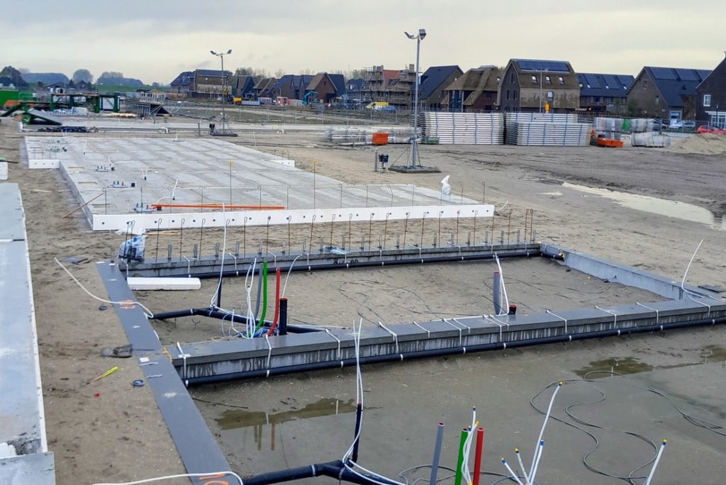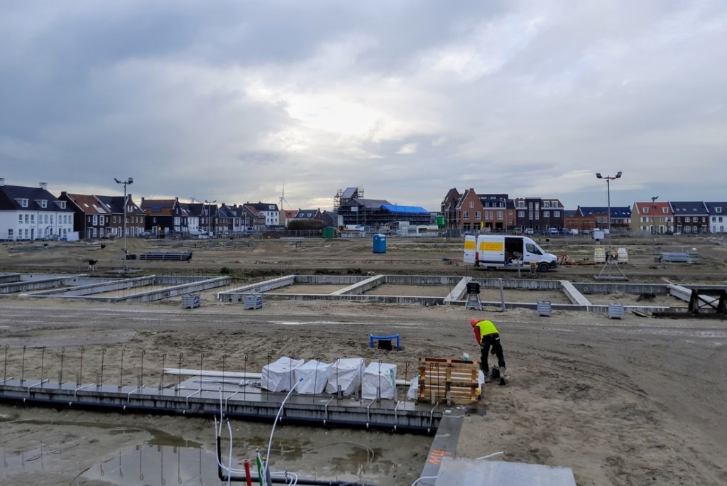 Aufgrund der vielen verschiedenen Längen und Durchmesser der vorgefertigten Pfähle sowie der unterschiedlichen Größen der vorgefertigten Fundamentbalken erweist sich das Ganze als höchst anspruchsvolles Puzzle. Bauen mit Fundamentbalken dient der Effizienz, der Baugeschwindigkeit und der konstanten Qualität des Endprodukts. Und eröffnet auch Möglichkeiten zur Erfüllung spezifischer Wünsche der künftigen Bewohner der Reihen-, Doppel- und Einfamilienhäuser.