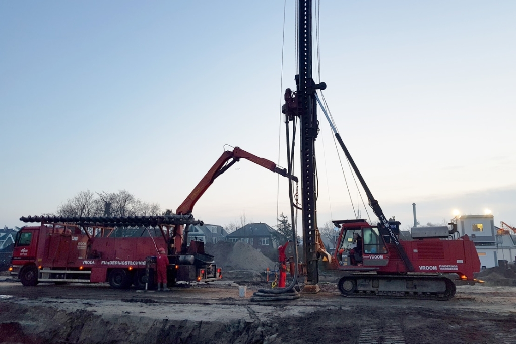Bei unwirtlichem Nebelwetter haben wir für die Firma Beton Bouw Service De Hoop 271 Betonschraubpfähle hergestellt. Auf den vorgefertigten Pfählen montiert Vroom die vorgefertigten Fundamentbalken. Unser Projektplaner Dave Liefting besuchte das Projekt und machte diese wunderschönen Bilder von den Rammarbeiten.