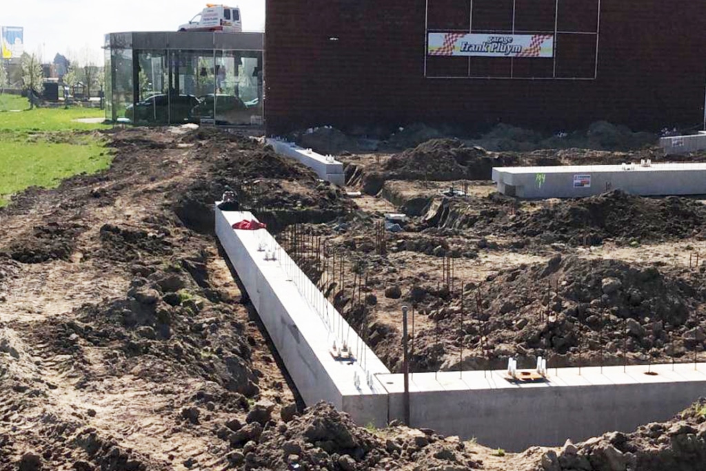 Wiederholungsübung in Nimwegen! Im Jahr 2013 haben wir das Fundament für die neue Werkstatt mit Ausstellungsraum des Autohauses Frank Pluym realisiert. Jetzt sind wir wieder zurück und realisieren einen schönen Erweiterungsbau des Unternehmens, in dem künftig Oldtimer gewartet und restauriert werden.
