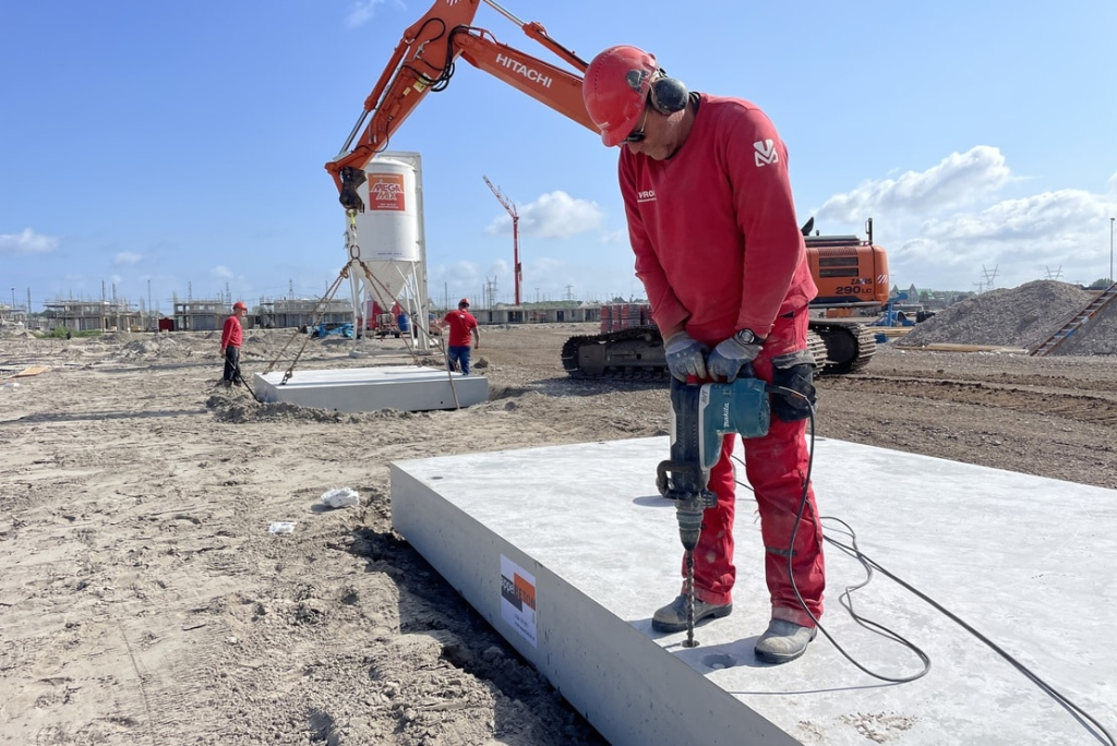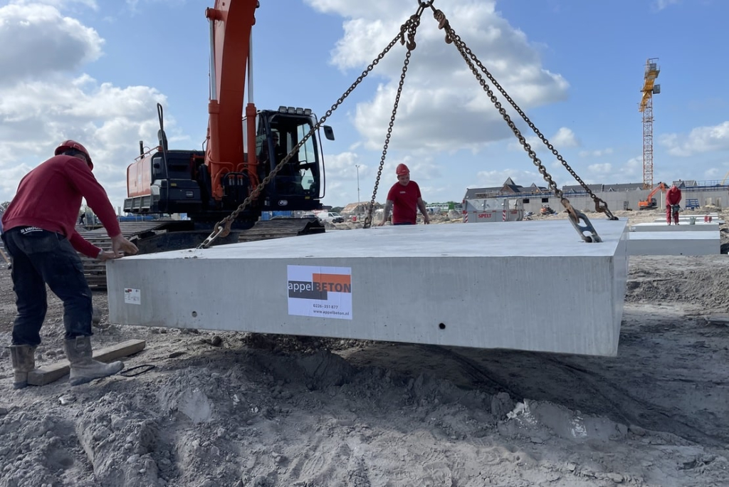 Bauen mit vorgefertigten Sohlplatten dient der Effizienz und der Baugeschwindigkeit und wirkt sich positiv auf die konstante Qualität des Endprodukts aus. Die vorgefertigten Sohlplatten wurden von Vroom entworfen und von Appel Beton hergestellt. Die Montage erfolgt nach den Vorgaben eines KOMO-KIWA-Produktzertifikats. Die Fertigelemente gewährleisten eine kurze Realisierungzeit.