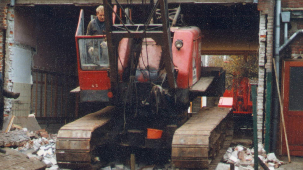 Back then, no-one batted an eyelid if the building site had to be made accessible with a cutting torch. The pile foundation just had to be installed. Sjors Vroom would say, “We’ll worry about welding that roof together later.” And so it came to pass that Sjaak Pronk could manoeuvre his crane through the dance school and into the courtyard to install the piles.