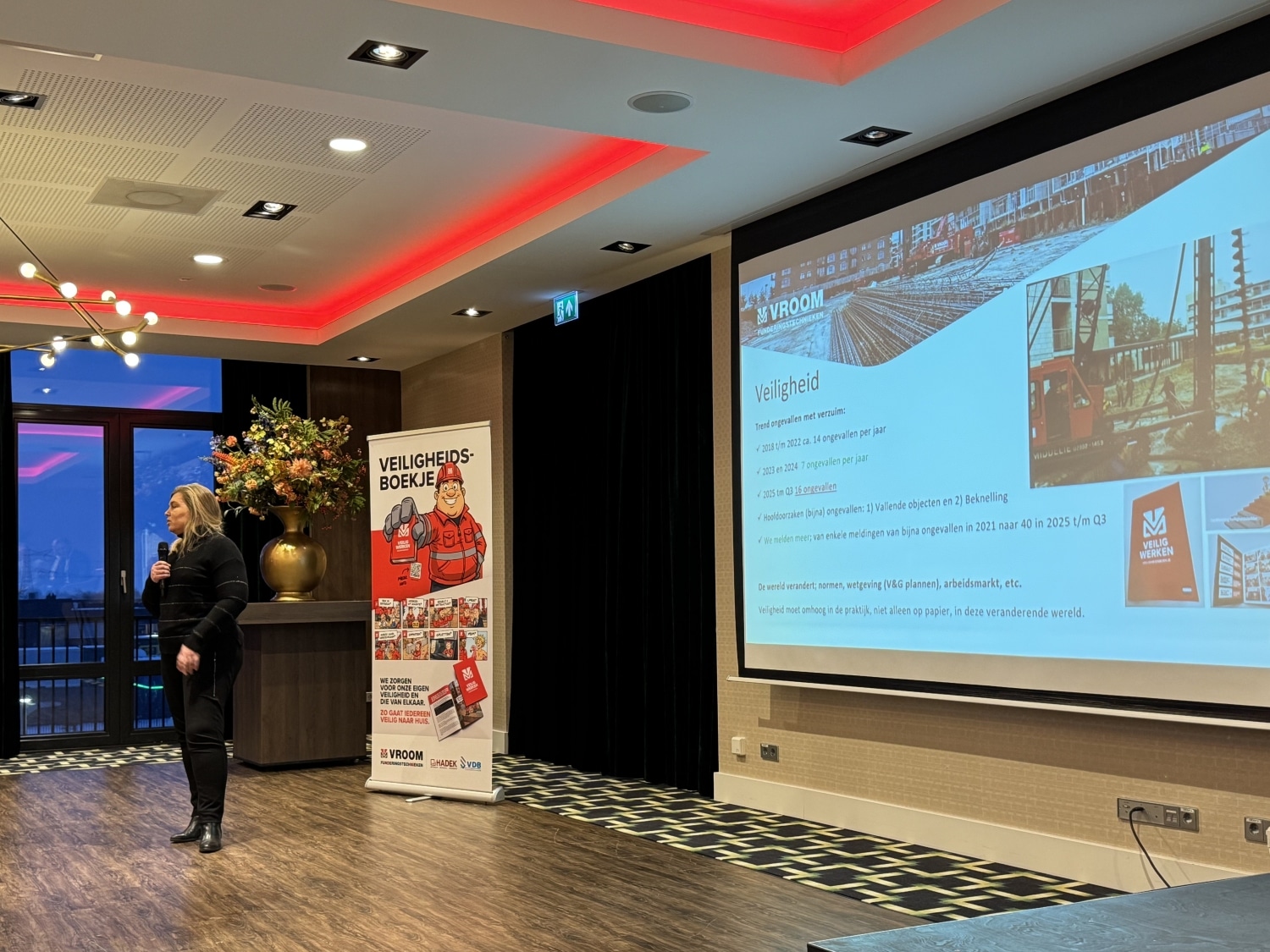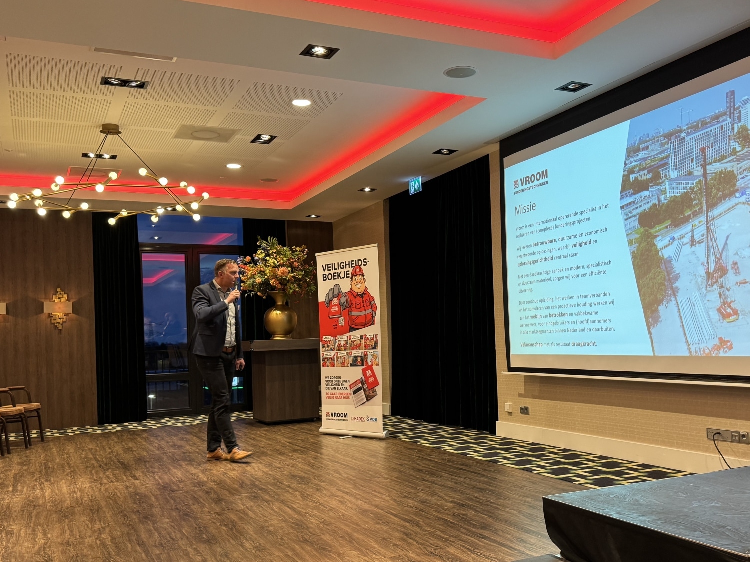 Peter Vroom opende de dag met een warm welkom en de beste wensen voor 2026, waarna hij een persoonlijk verhaal vertelde over zijn lange loopbaan bij Vroom en de beëindiging van zijn functie als Algemeen Directeur: “Ik neem geen afscheid, maar ik krijg wel een nieuwe rol”. In zijn nieuwe rol is Peter toegetreden tot de Raad van Advies (RvA). De RvA is een groep onafhankelijke experts die de directie van Vroom voorziet van strategisch, ongevraagd en gevraagd advies en helpt bij (complexe) vraagstukken, waaronder continuïteit, groei van de onderneming, professionalisering, digitalisering en dient als strategische sparingspartner. De RvA bestaat naast Peter Vroom uit Pieter Leyssius (CraftCapital), Niels Huber (Boon Edam) en Piet van Hoeven (voormalig VolkerWessels).