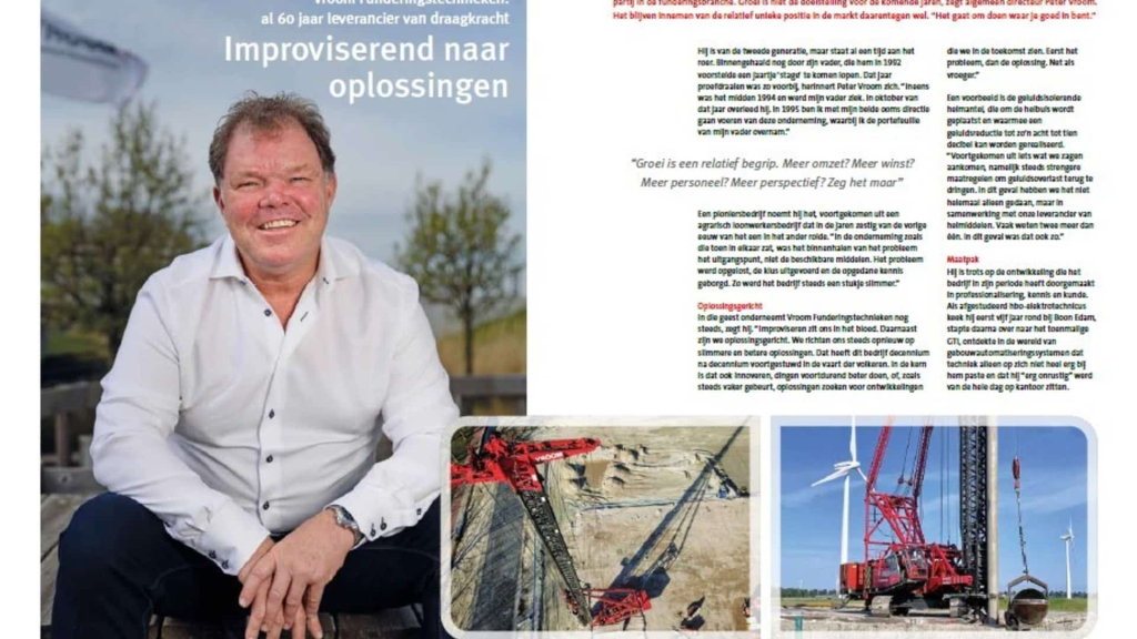 Hierin ook veel aandacht voor Vroom Funderingstechnieken, met onder andere een interview met Peter Vroom, veel foto’s van Vroom projecten, Vroom materieel en diverse adverteerders die Vroom feliciteren met het 60-jarig bestaan. Gekte in de markt, schaarste aan grondstoffen met voortdurend verder oplopende prijzen tot gevolg en voortdurende vraag naar deskundige vaklieden. De gehele bouwkolom, waarvan de funderingsbranche deel uitmaakt, zucht onder de huidige omstandigheden. “Onze grootste zorg op dit moment is hoe we de hoge grondstofprijzen kunnen doorberekenen, zonder onszelf uit de markt te prijzen”, vertelt Jaap Estié, directeur van de Nederlandse Vereniging Aannemers Funderingswerken (NVAF) in deze uitgave. Ook de toenemende schaarste is een bron van zorg. Betonproducenten bijvoorbeeld zien de beschikbaarheid van staal afnemen: en zonder staal geen wapening voor beton.