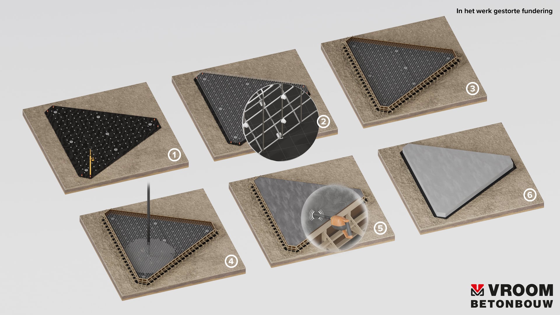 - Plaatsen onderzijde bekisting en afstandhouders