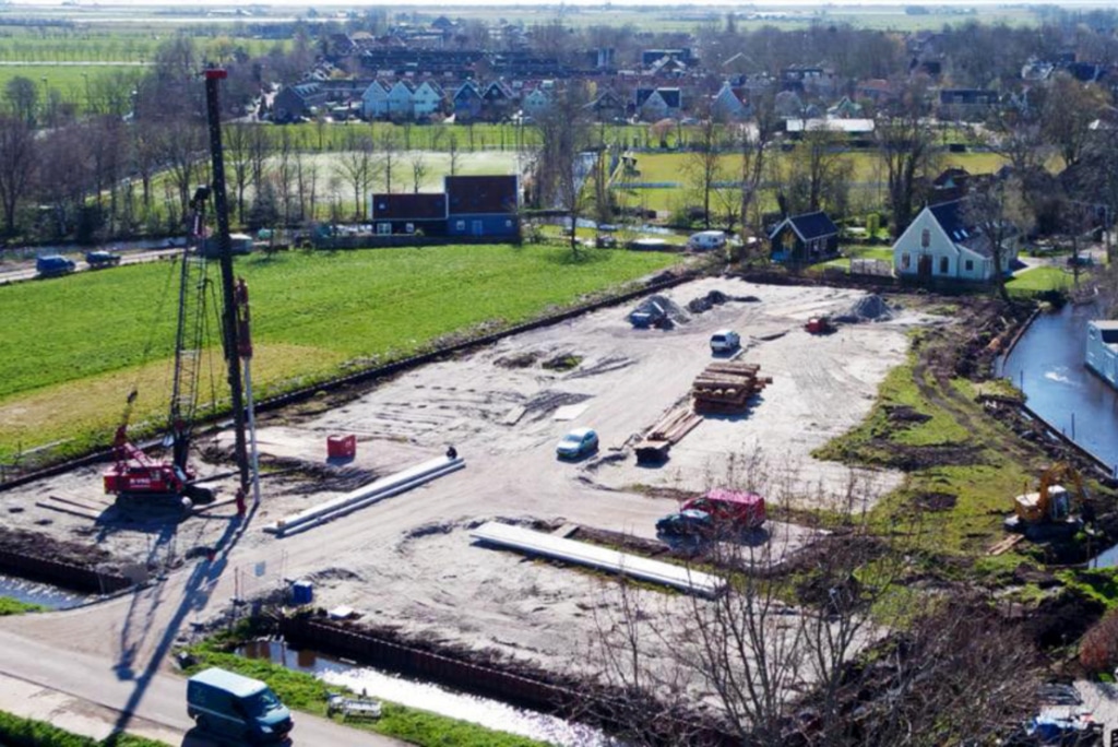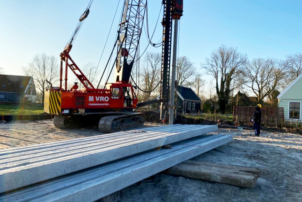 Broek in Waterland, de naam verklapt het al, slappe grond bestaande uit veen met veel water. De wegen naar het project toe hebben daar ook last van en hebben daarom een gewichtsbeperking. Om binnen de beperkingen te vallen is de heimachine deels gedemonteerd en zij de vrachten met prefab betonpalen en funderingsbalken niet helemaal vol geladen. Het resultaat mag er zijn, we kijken uit naar de verdere samenwerking met Mercuur.