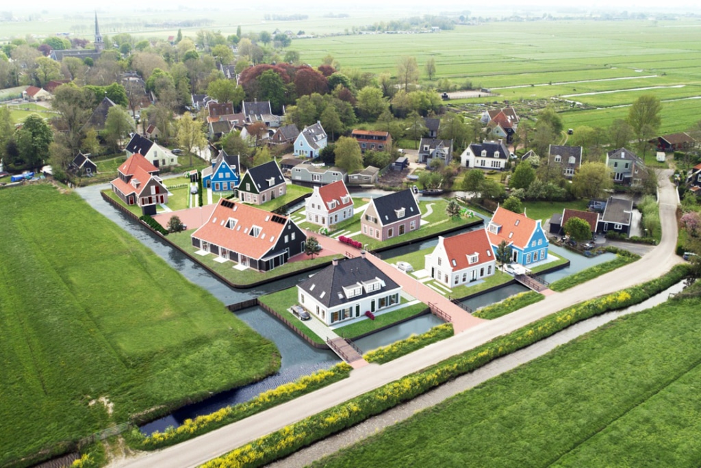 In Broek in Waterland is het mooie ‘Plan van Dis’ ontwikkelt. 15 Mooie woningen op een eiland, aan de rand van dit dorp. De ontwikkeling en bouw van het plan ligt in handen van Mercuur uit Purmerend. Gezien de lastig bereikbare locatie vroegen ze ons een variant in prefab beton uit te voeren, bestaande uit palen, funderingsbalken en kelder.