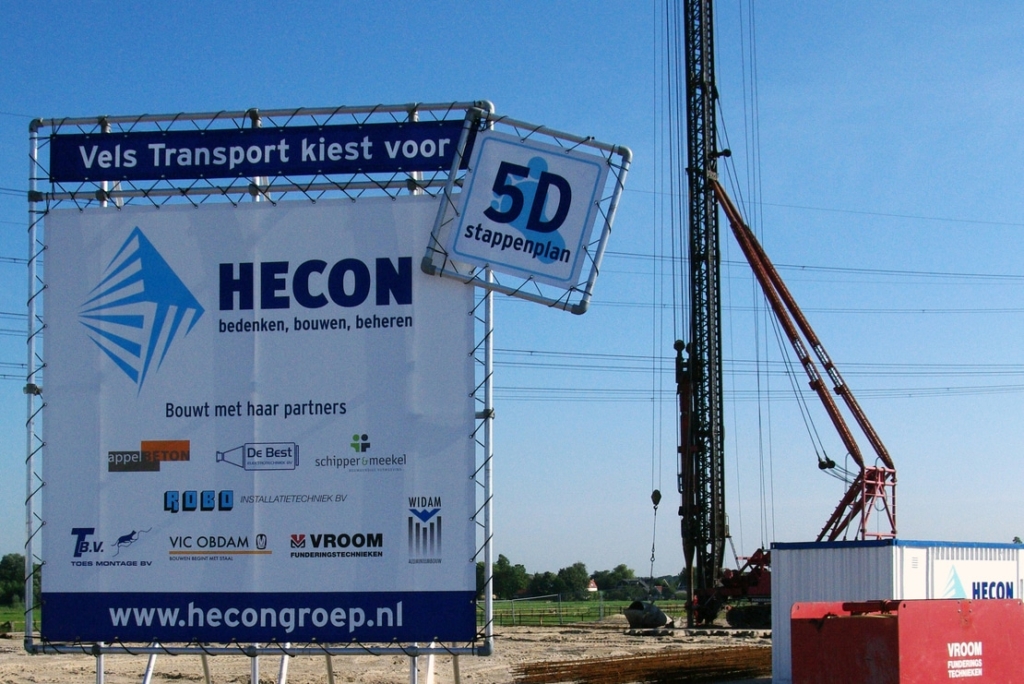 In 2010 produceerde Vroom Funderingstechnieken op deze zichtlocatie aan de verlengde Stellingweg langs de buitenring A10 bij de aansluiting met de A8 reeds de Vibro-palen voor de nieuwbouw van Meyn Foodprocessing Technology.
