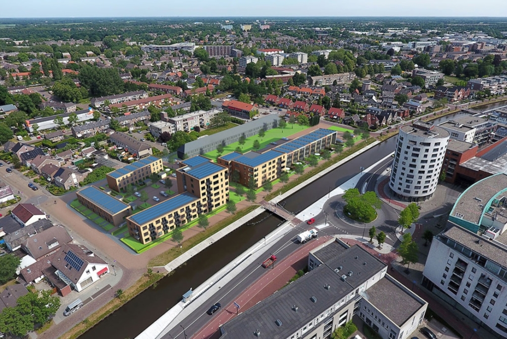 De wijk Mercuriushof in Assen bestaat uit verschillende woningtypes: gezinswoningen aan het hof, bijzondere stadsvilla’s aan de kade en verschillende appartementen. Vroom legt de basis door het aanbrengen van betonmortelschroefpalen, prefab funderingsbalken en liftputten.