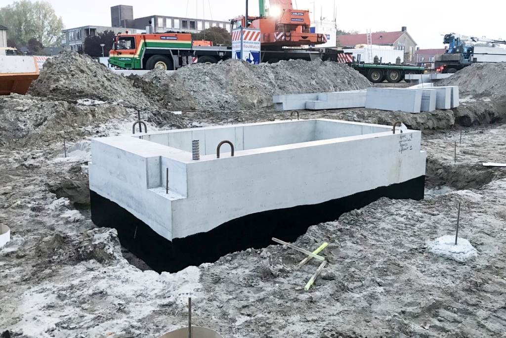 Het project Mercuriushof bevindt zich in de Oude Molenbuurt en is gelegen tussen het water van Het Kanaal en de Doctor Schaepmanstraat. Bij de appartementen wordt per gebouw ook een prefab liftput toegepast. Deze is ook geproduceerd als prefab element. De liftput is voorzien van inkepingen waarin de prefab funderingsbalken worden gelegd. De 158 funderingsbalken zullen in twee dagen worden geplaatst, waarna nog twee dagen wordt besteed aan het fixeren van de elementen aan de betonmortelschroefpalen.
