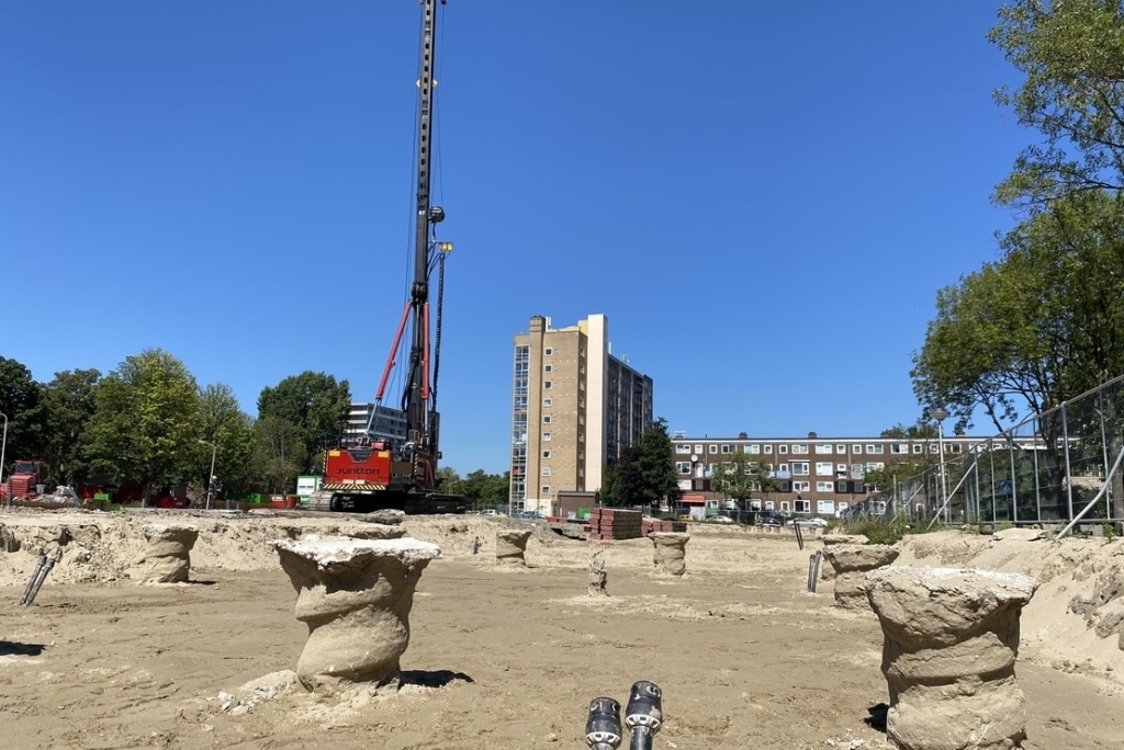 In Delft verschijnen in 2021 nieuwe woningen en appartementen in de Van der Goesstraat en de Van Schuijlenburchstraat. Vroom fundeert hier met verschillende paalsystemen en plaatst er prefab funderingselementen.