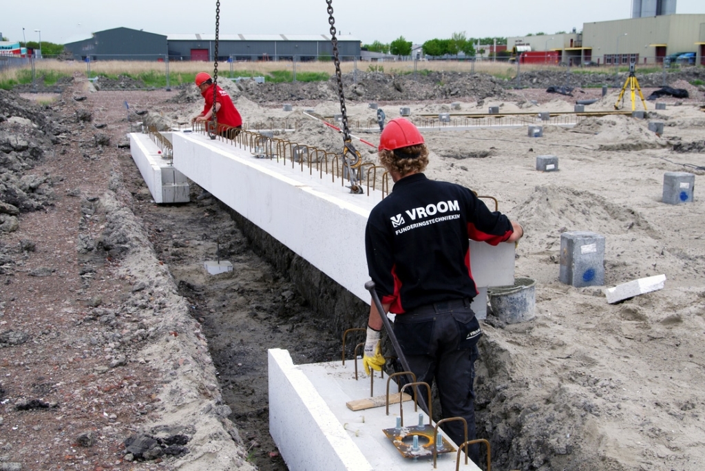 Vroom verzorgde voor dit project de maatvoering, de prefab betonpalen en funderingsconstructie (prefab funderingsbalken).