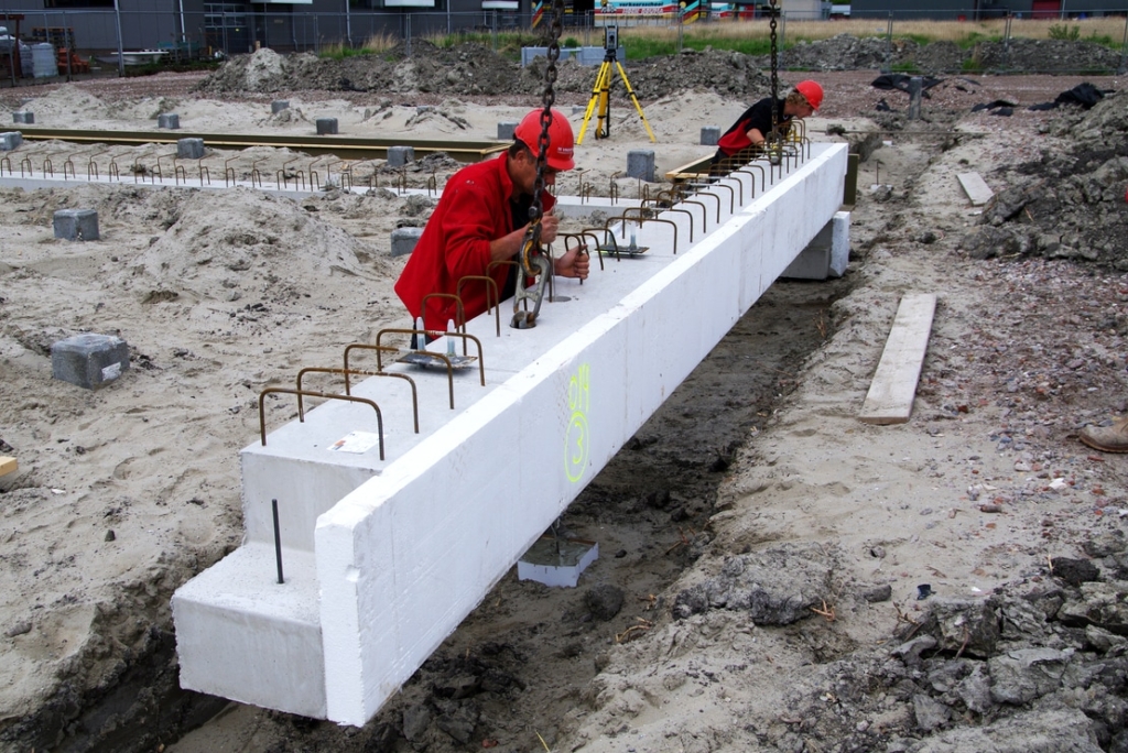 Het toepassen van prefab funderingsbalken levert een snelle bouwmethodiek op. Doordat geen steklengte nodig is wordt tot 500 mm bespaard op de lengte van de hei-/boorpalen. De ankergroepen worden fabrieksmatig ingestort wat een exacte maatvoering oplevert.