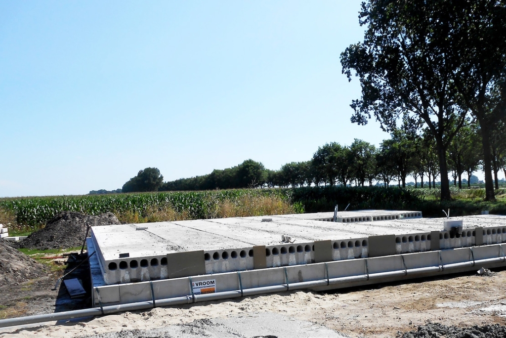 Door het toepassen van de prefab fundering zijn in een ochtend alle prefab funderingsbalken geplaatst. Dezelfde middag werden de twee prefab kelders ingehesen en gemonteerd. Doordat alle elementen worden gemonteerd met de telekraan is de fysieke belasting bij het bouwen met prefab licht.