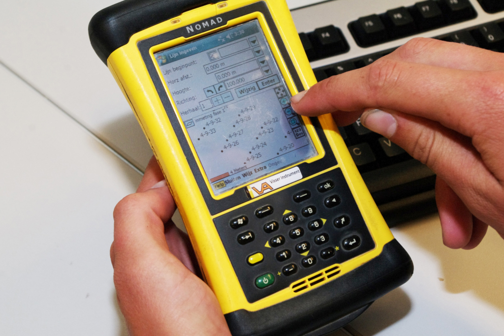 - Het meten van de hoogtematen (Z-as) om bijvoorbeeld de hoogte van de begane grondvloer ten opzichte van het bestaande maaiveld vast te leggen. Dit is van belang bij het maatvoeren van de fundering en het uitzetten van de vloeren en de wanden bij een kelder