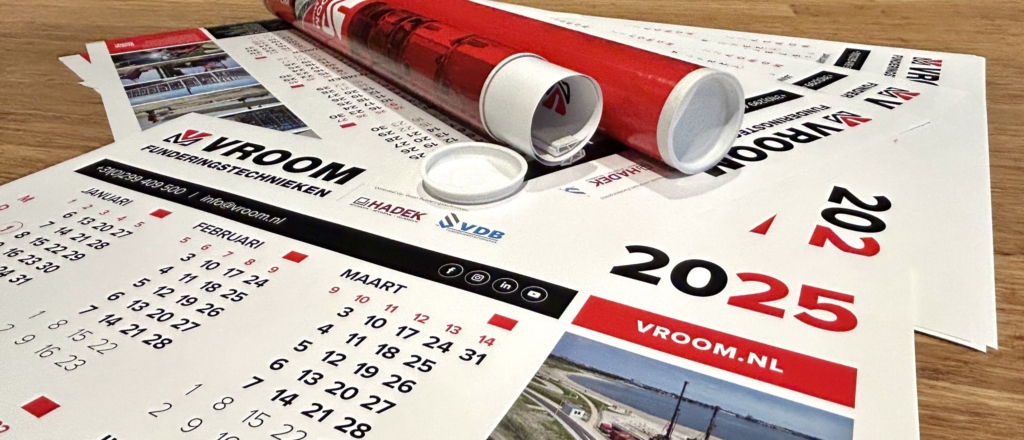Het schema voor 2025 kan worden gemaakt, want de Vroom kalender voor het nieuwe jaar ligt vanaf nu klaar. Voor kantoor, in de bouwkeet of voor thuis.
